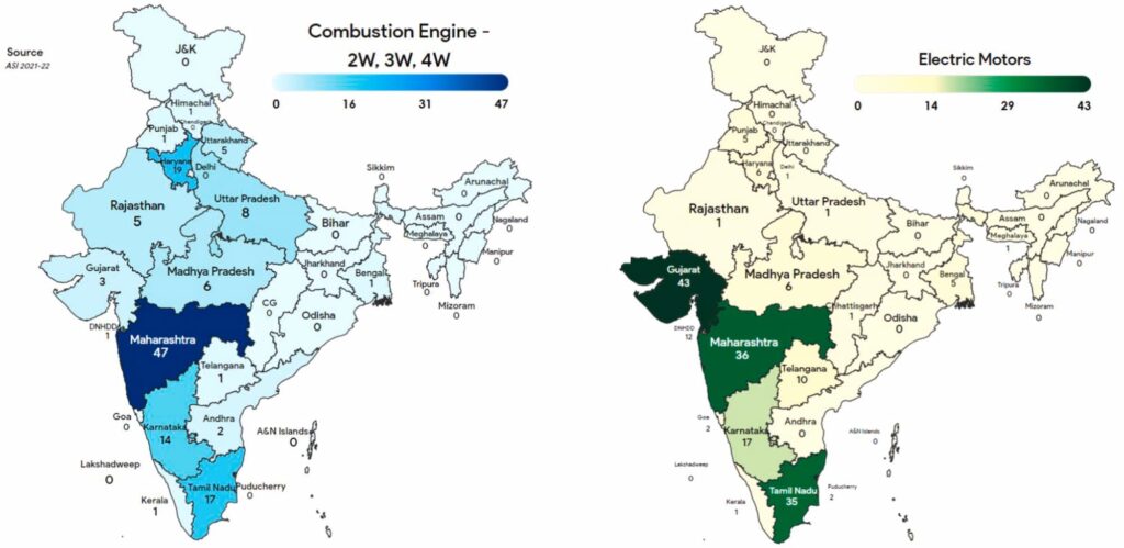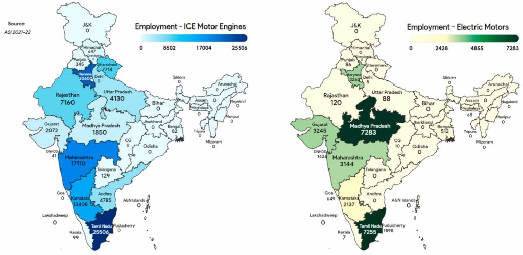 Our research asks: What is the emerging geography of jobs in electric vehicle manufacturing, and how does it compare to the geography of jobs in traditional ICE manufacturing? What does this mean for India’s bigger challenge of addressing regional inequality?